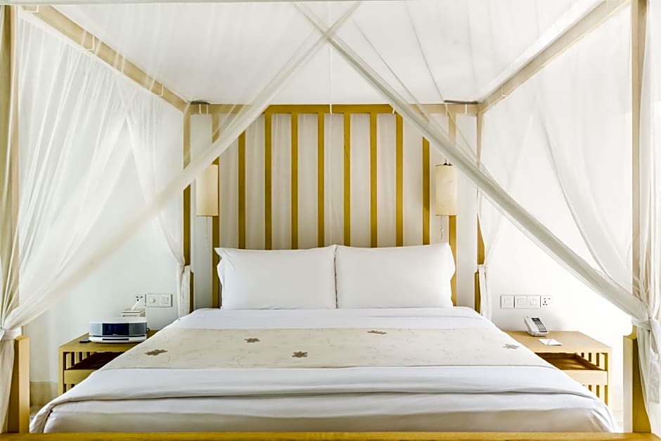Located on the upper floor, this 55-sqm room features a hand carved four-poster bed and french doors, which leads to a balcony overlooking Uma Ubud's gardens. A day bed an a seating area under a thatched roof are available. The private semi open bathroom has an oversize bathtub and a separate shower. Guests enjoy: - Daily replenished fresh tropical fruit - Daily guided morning terraced paddy walk - Daily scheduled yoga class - Free return scheduled shuttle service to Ubud City Center - Free access to COMO Shambhala gym and lap pool - Free Internet access