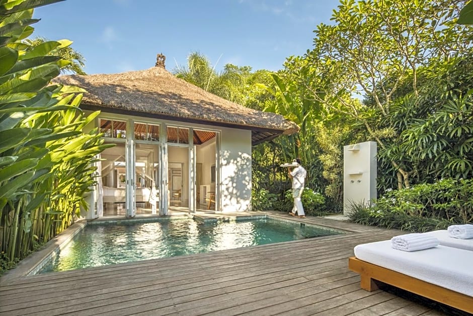 Uma Pool Villa is 1012 square feet and includes a king-size bed 150-183 width plus terrace, extra beds on demand, desk, satellite tv , hairdryer, bathrobes, and slippers.